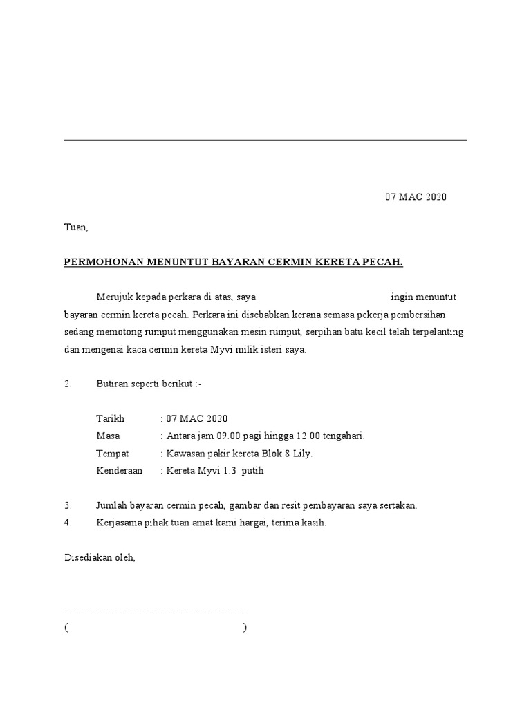 Surat Tuntutan Cermin Kereta Pecah Pdf